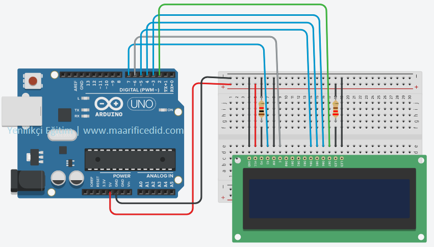 | TinkerCAD Platformunu Kullanarak Merhaba Dünya Mesajını LCD Ekranda Görüntüleyen Arduino Uygulaması | |